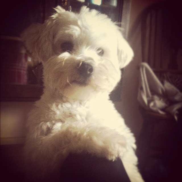After my stroll I went back to bed to find Mummy. I snuggled under her arm and wiggled and sniffled until she got up. We’ve always liked to eat breakfast together, and seeing as she’s usually in the city, she makes an extra fuss of me when she’s home. I got to sit up at the counter wearing sunglasses and have some of last night’s chicken…