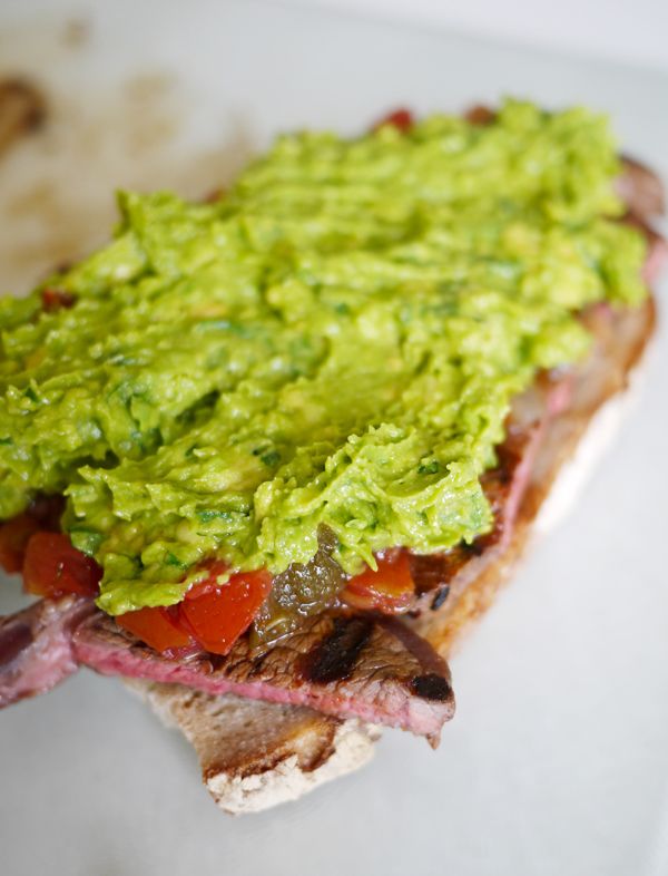 Leave it to rest while you knock up your guacamole. Squeeze an avocado into a bowl, mash it with some chopped coriander, salt & a big squeeze of lime. Slice your steak.