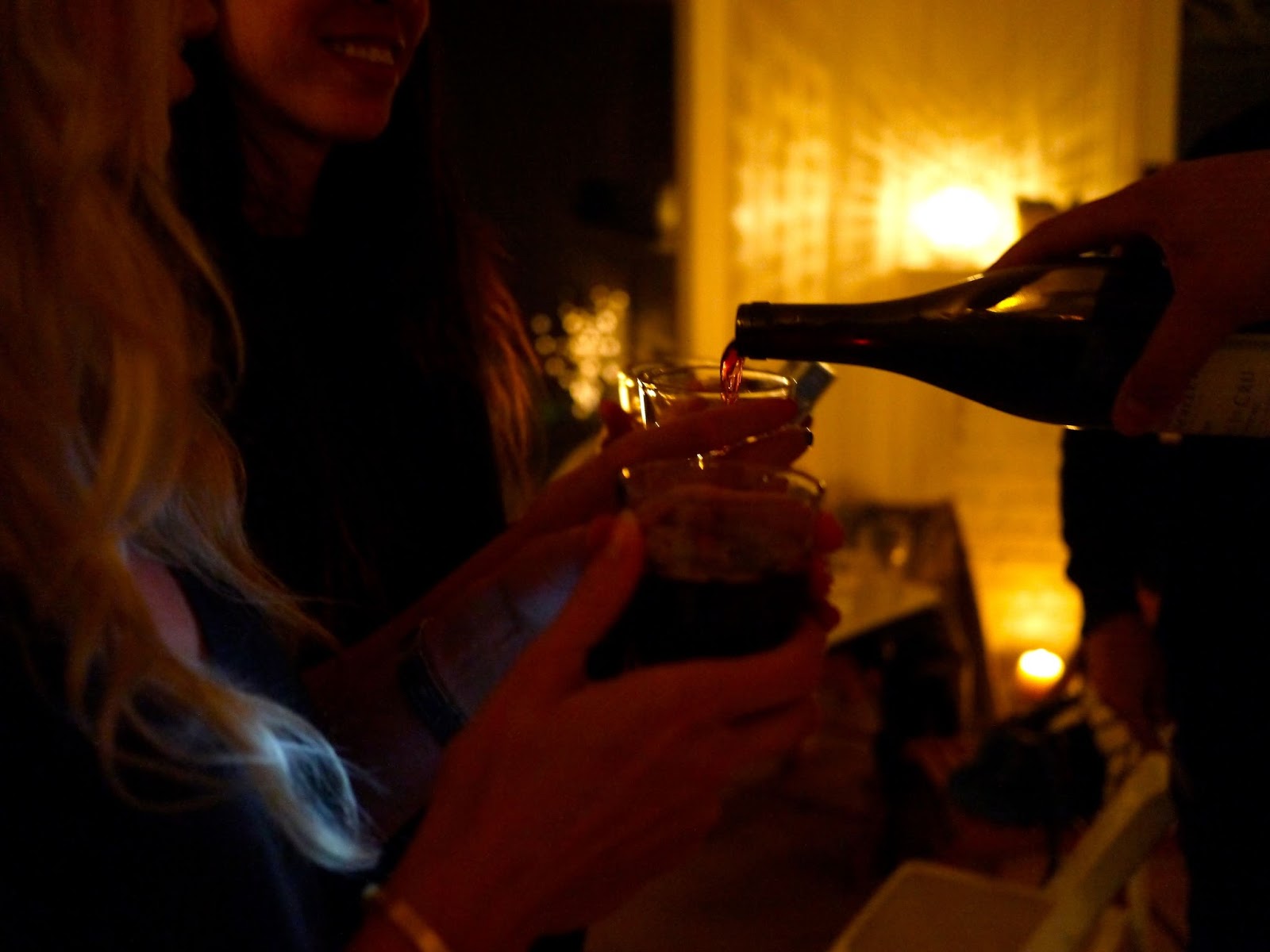 We planned a dinner party, everyone brought a dish and we threw it all together with a good slosh of wine to go with it.