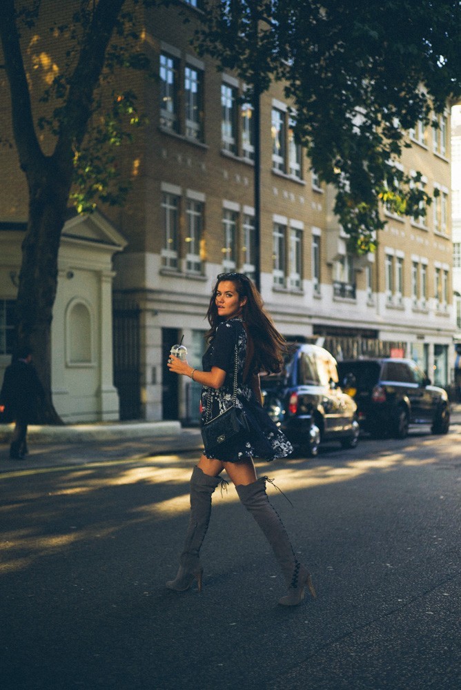 I rushed home to change. Pulled on a floaty dress and poured myself into over the knee boots. Ready for the next show.