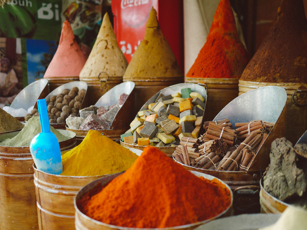 You drift through clouds of mint, into the smell of roasting tagines, and on again into a sea of spices.