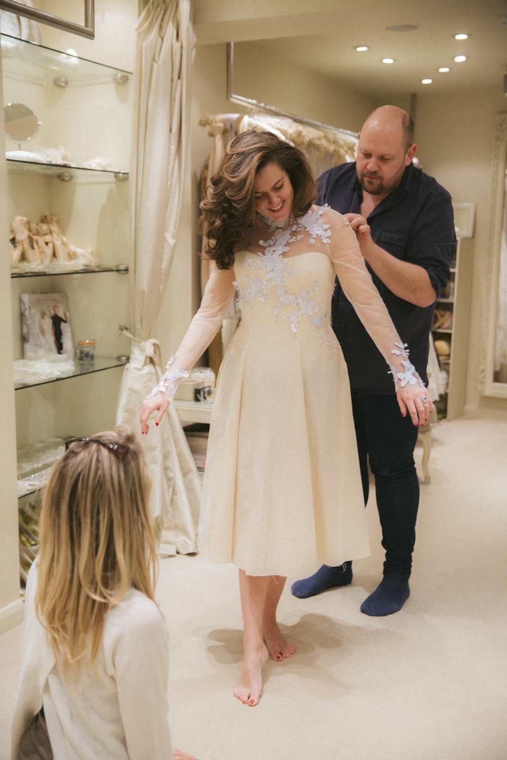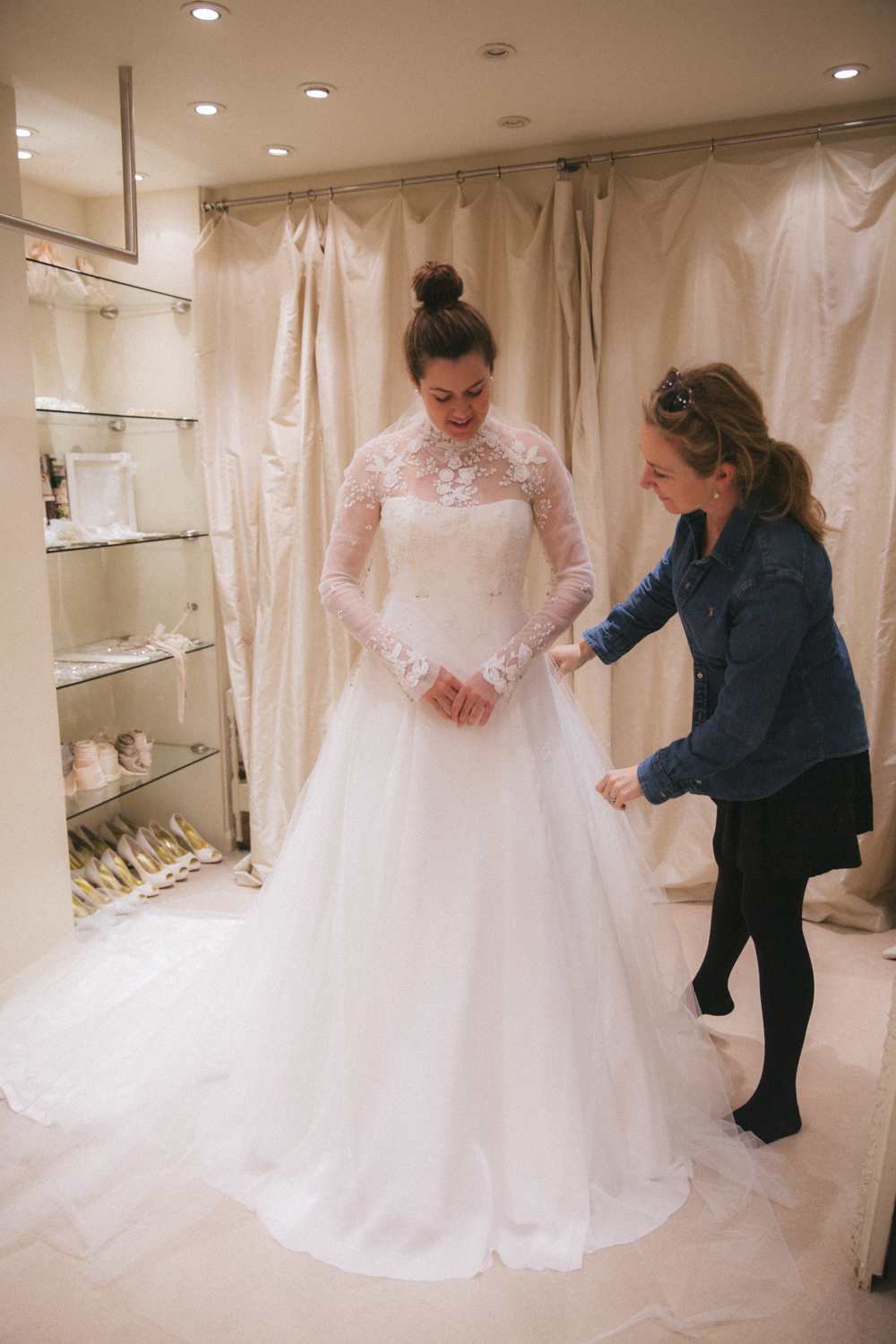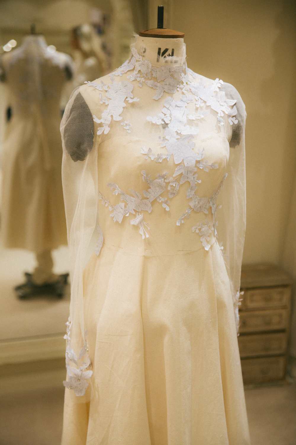 I wanted long sleeves, embroidery, roses, buttons up the back, a high neck (every dress I’d tried elsewhere was so booby! You know I’m far from prudish about these things, but really feel a wedding day isn’t really the time to worry if you’re about to pop out!) and nothing too corseted. I wanted to eat!